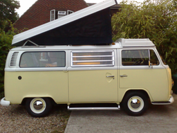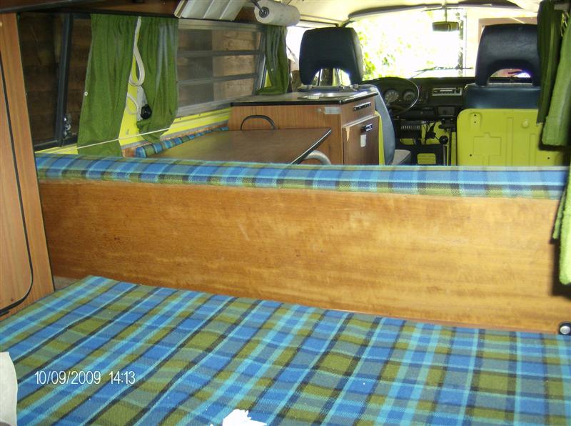 A quick site for my new Bay window camper A 1975 pop top Westfalia Auto 2.0L, exactly what I was after. Note this is an old page and will be updated soon, he's got a subaru engine now ! click on the thumbnail images below to see bigger images then click the back button on your browser to return to this page Its LHD. Runs like a absolute dream, a lot quicker than I expected, definitely no speed or performance issues. Needs remedial work, mainly electrics and a good tidy. Will respray but no idea of colour yet. No name for him/her as yet. 28k miles .. cough ! Absolutely immaculate underneath. Paint is weather worn, originally from Nevavda US its a great find. To do: Must find out how to get indicators sorted out, the main lights dim when the indicators are on, someone said its the earth but what exactly do they mean by that, there must be miles of earth cabling to check :-( Driver window winder mechanism just spins, tried to get it out today but had to shelve it, I can see how it works but it just will not come out (hats off to the production line for getting it in !) I fixed fuel line next to petrol tank, completely split and petrol everywhere, could have been a disaster. have read about some sort of fire extinguisher for the engine, must find out about these. Interior is really exceptional bar roof lining in front cab. Hate to say this (as the purists would kill me) but I'm going to modernise it to suit my needs. Great bonus, its already got 3 seat belts fitted, unfortunately they are lap belts so need to adapt to suit car seats for kids (any ideas pls email me kev.mansfield@gmail.com) really needs rewiring if I am honest. List of items to get: New window wind up mechanism - and then fit it somehow. new seals for all windows and roof - replace all wiring loom fridge (gap for it but no fridge) and what does the control below actually do (should it do) What's this control for under the seat?